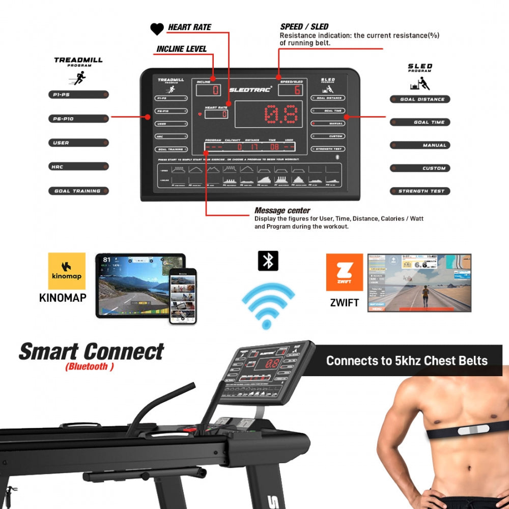 • 6x Training Modes with 5x Sled Programs and more than 10x Treadmill Programs