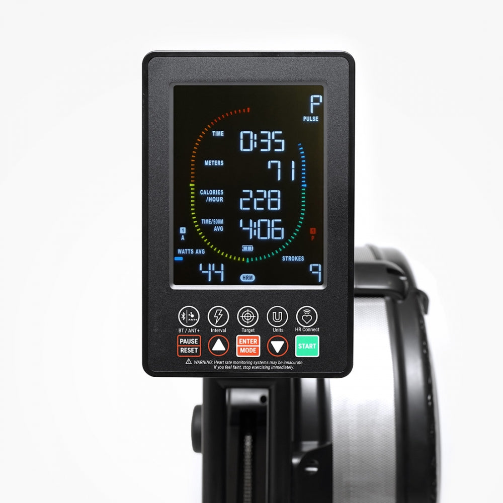 - Tracks on one display: Time Rowed, Meters, Strokes per Minute, Calories, Watts, 500m pace per stroke, total strokes, heart rate (when connected to a heart rate monitor)