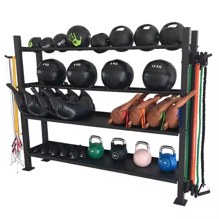 Elevate your gym’s organization with the Tactical 4-Tier Storage Rack and ensure all your fitness essentials are stored securely and stylishly.